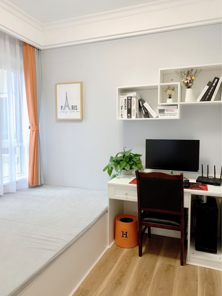榻榻米房间,家里的定制柜以及床都是按照空间比例来做的,所以卧室看起来不会显得拥挤,反而实用性能很强。比如榻榻米的房间,床既可以作为休息,也可以作为收纳柜。
