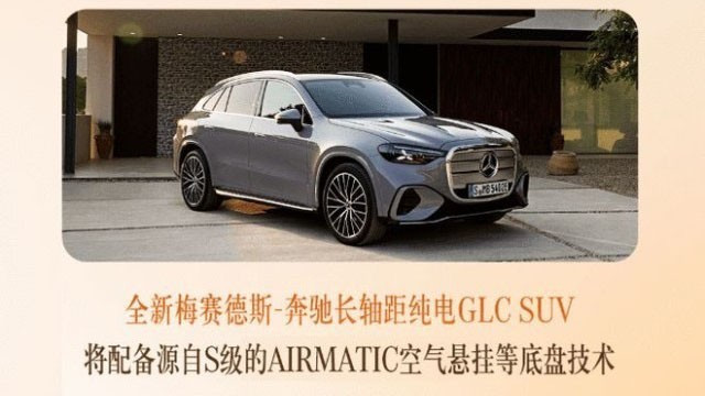 在最新的申报名单中,国产长轴距GLC EV采用双电机四驱动力,还配有源自S级的AIRMATIC空气悬架等底盘技术。